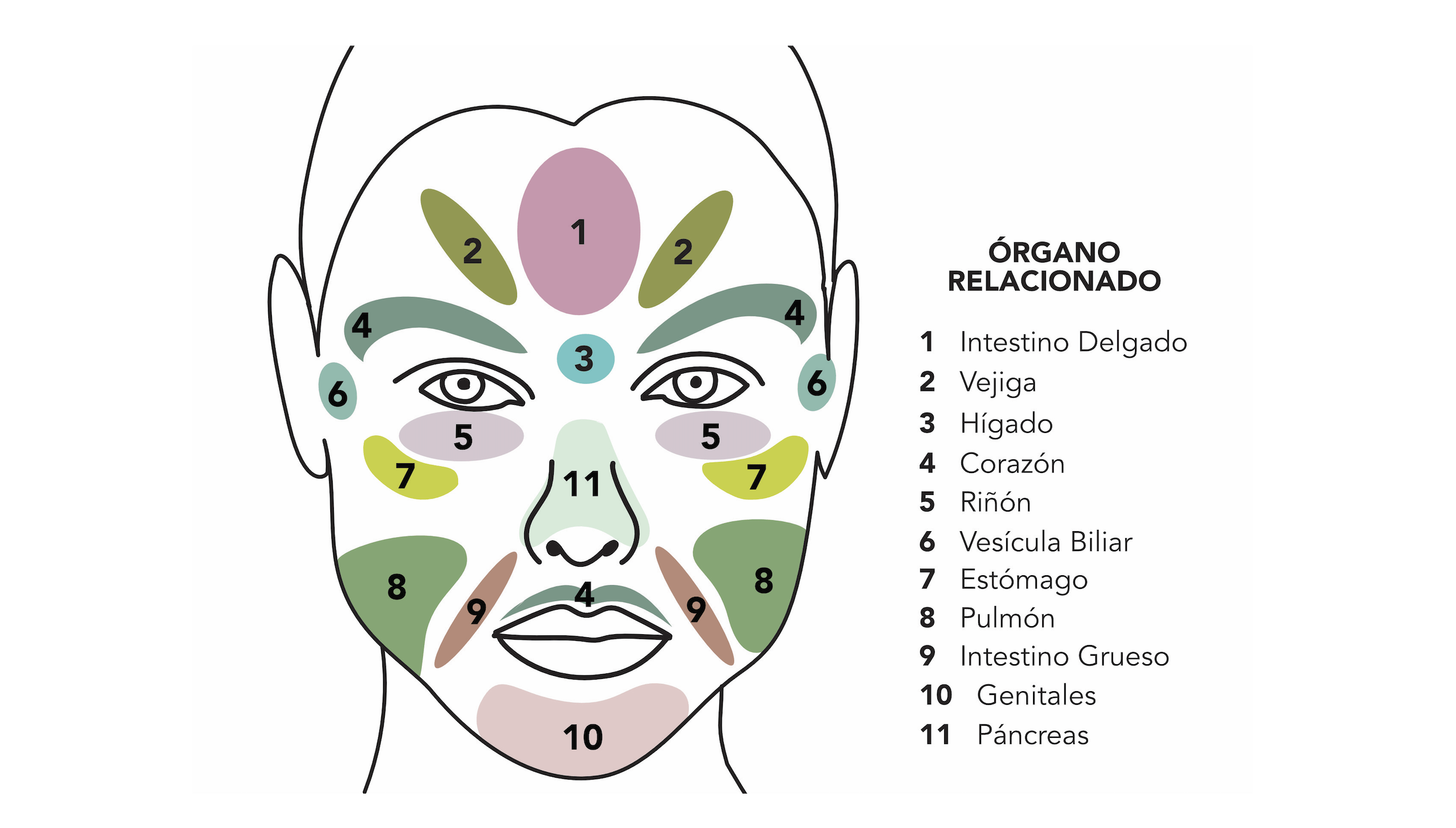 Detecta en qué zona de tu rostro está tu situación y lee debajo lo que te está diciendo el órgano que está en desbalance.
